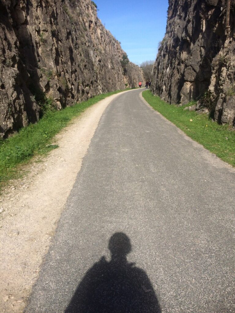 Na de koffiestop in Cabra wordt de route nog mooier. Olijfbomen, inderdaad, maar nu iets natuurlijker gerangschikt. Kan ook zijn dat de olijfbomen alignment me minder stoort dan gisteren. Een veranderend perspectief bij deze waarnemer. De weg loopt door tunnels en langs uitgehakte bergwanden. De bermen staan in bloei, het voorjaar is hier losgebarsten . Een schaapskudde passeert , konijntjes rennen over de weg. Wat mooi!
